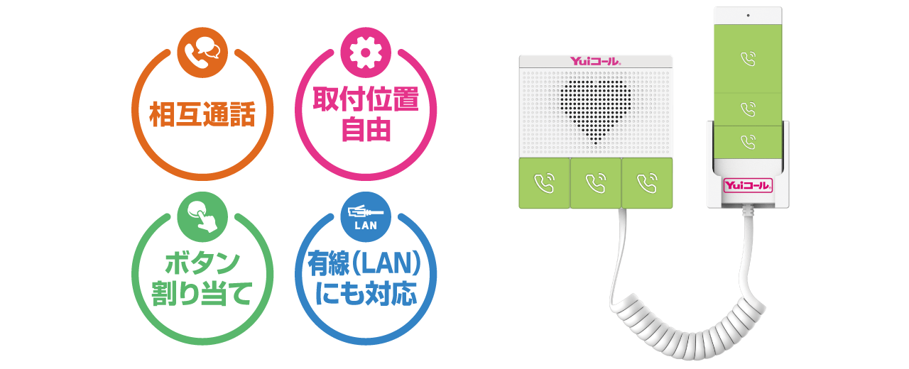 従来の無線ナースコールとは違い、居室からの呼び出しも相互通話で対応可能